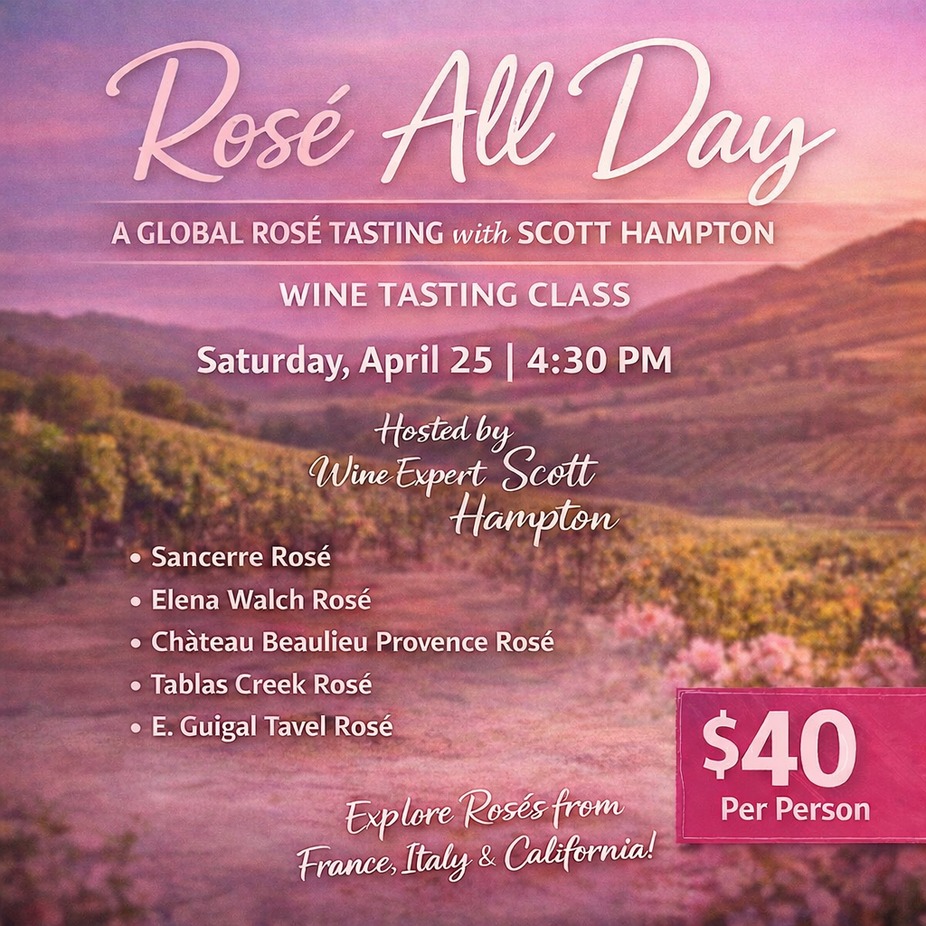Join us for a vibrant, palate-refreshing exploration of one of wine’s most versatile and misunderstood styles - rosé. Led by wine expert Scott Hampton, this guided tasting moves beyond the “summer sipper” stereotype to uncover the structure, terroir, and winemaking precision that define serious rosé wines across the globe.